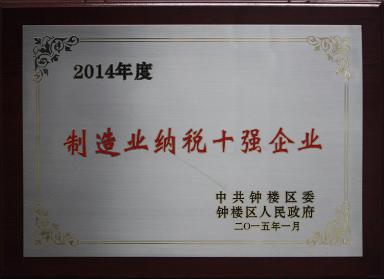 公司被鐘樓區委、區政府授予“制造業納稅十強企業”,公司董事長兼總經理姜漢軍被鐘樓區委、區政府授予“優秀企業家”的榮譽稱號。