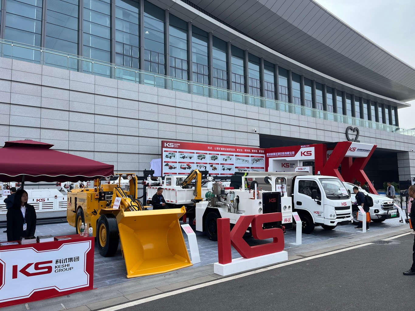科試集團展區位于C2國際館室外T01,展位面積近300平米。通過企業宣傳片播放、實物裝備亮相、現場講解、彩頁宣傳等方式,全方位展示了公司最新技術創新成果。防爆柴油機重型單軌吊、防爆鋰電池單軌吊、防爆鋰電池無軌膠輪車、防爆柴油機裝載機等具有行業代表性、技術含量高、智能化的一系列新產品、新技術,吸引了眾多參會者駐足參觀、咨詢交流。